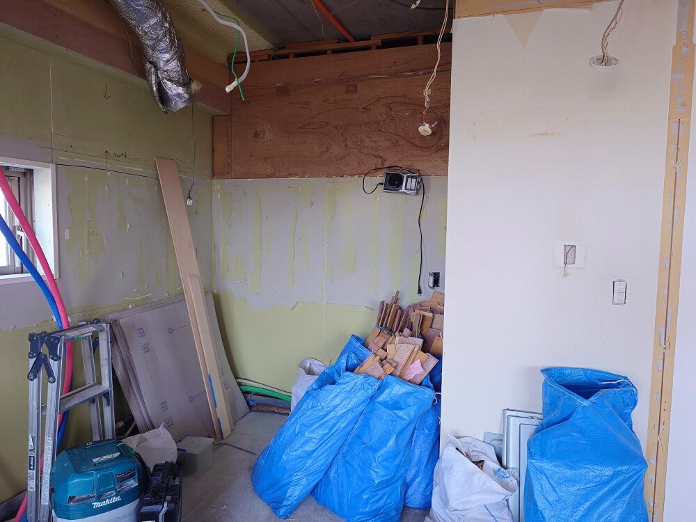 水回り、電気関係の配管、配線については解体してみてはじめてわかることもあり、最初の一週間ほどは頻繁に確認や打ち合わせが必要でした。