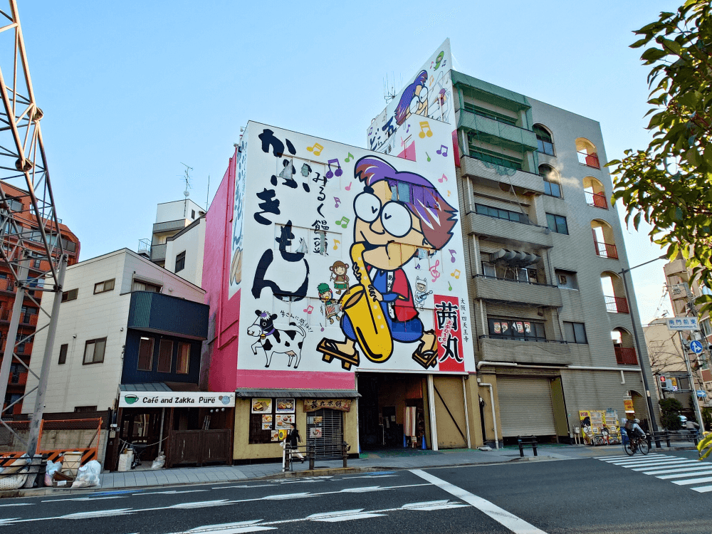 社長の看板が目立ってます。四天王寺からだと徒歩5分ほどの距離で、観光のついでに立ち寄ることができます