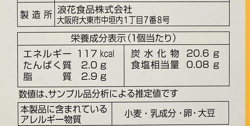 栄養成分表示です