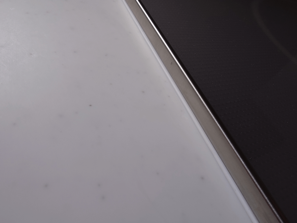ひっぱれば伸びるし潰せば薄くなるので、それを天板とIHクッキングヒーターの隙間にチクチクと埋め込んでいくのですが(道具などは使わず指先で差し込めました)、