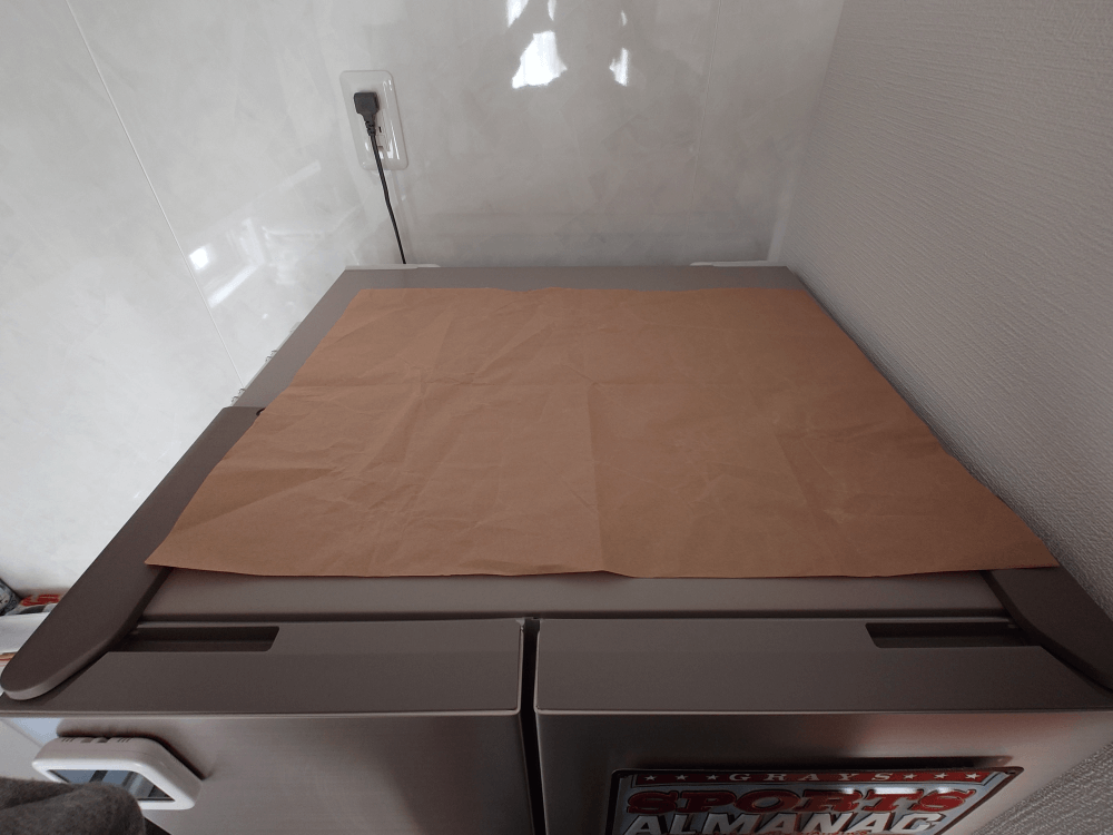あと冷蔵庫の上に紙を敷きました。
