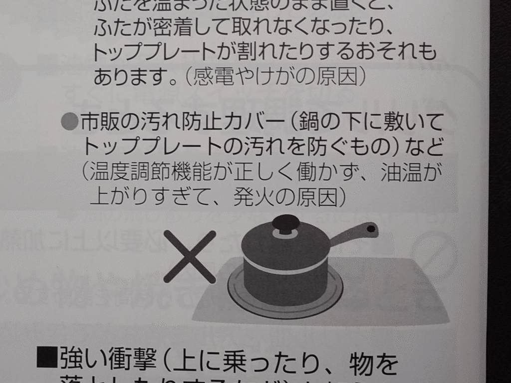 いろいろなメーカーから発売されていますし、トッププレートのキズが防げるというのは魅力的ではありますが、我が家が採用しているPanasonicのIHクッキングヒーター(KZ-A1T7S)は、IHマットの使用を禁止しています。