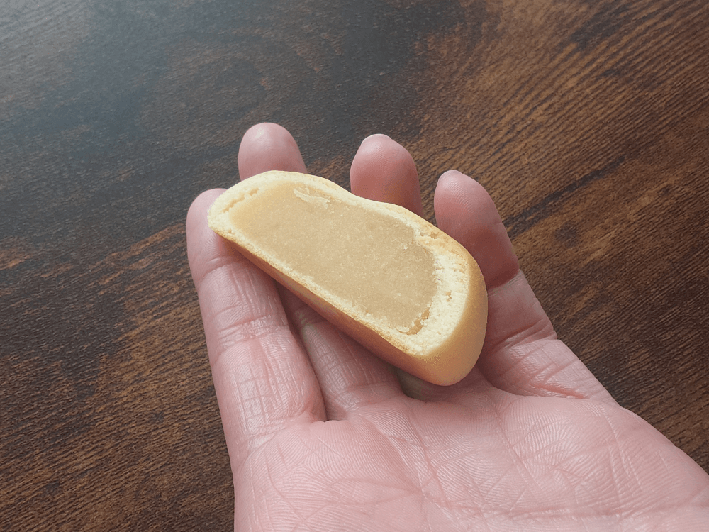 見た目は多くのミルク饅頭と変わらないなめらかな黄み餡です。