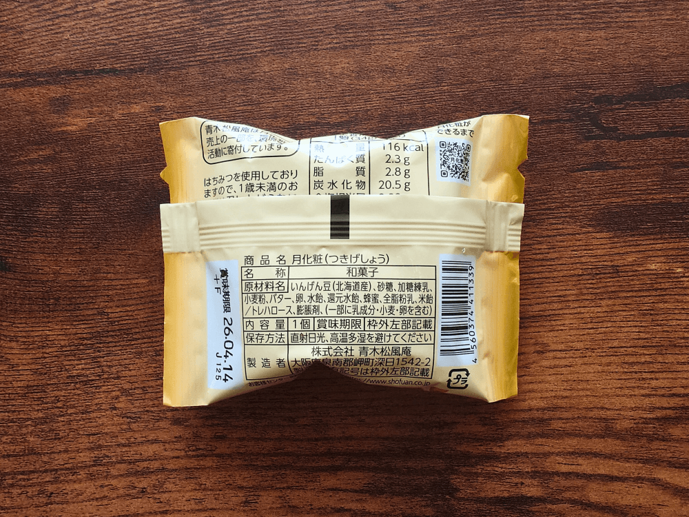 駅や空港の売店ではこのタイプの取り扱いがメインですが、直営店や公式オンラインショップなら姉妹品の「伊右衛門月化粧」や「月化粧生サブレ」など、そのほかの「青木松風庵」のお菓子とアソートになったタイプもあります。