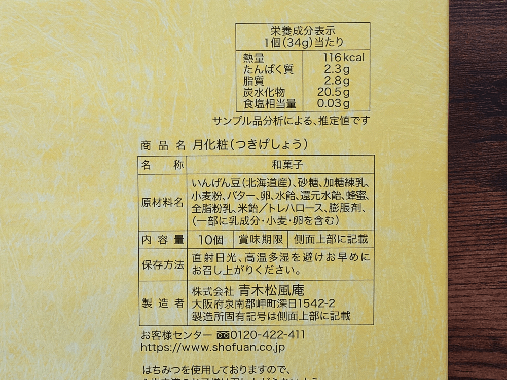 「みるく饅頭月化粧」は、蜂蜜以外は国産の原料を使用しているとのこと。